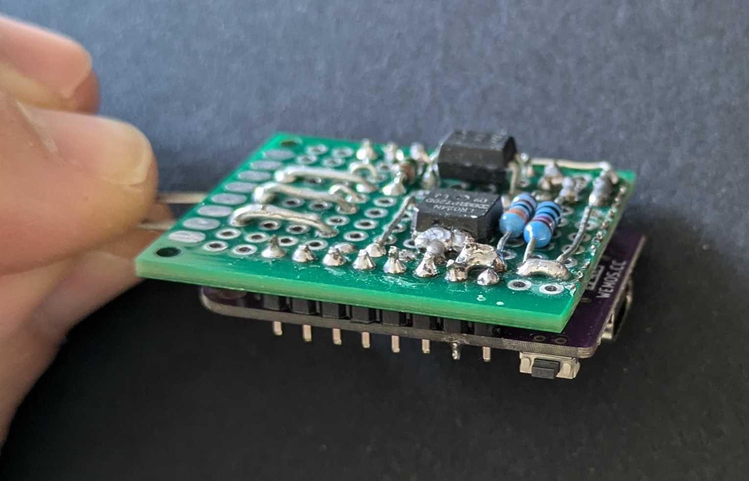Custom shield Le shield maison soudé sur un Wimos S2 Mini.